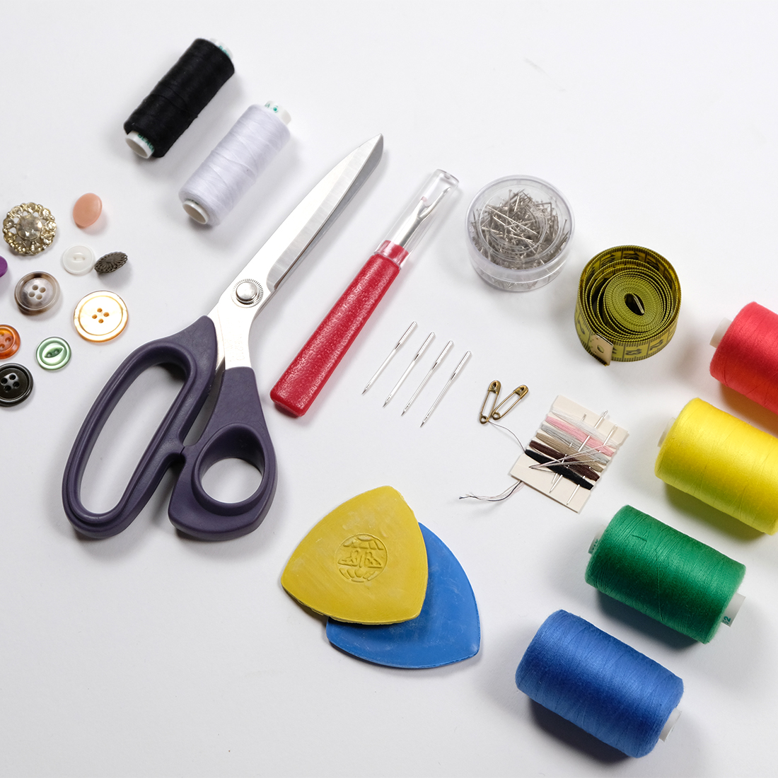 Many sewing kits online offer poor quality threads and scissors and fancy boxes with cheap utensils inside. The scissors included in this kit is actually a good one and you will be able to use it even as you advance in your skill. The same goes with all the other tools in the kit. We only included what we would ourselves use.